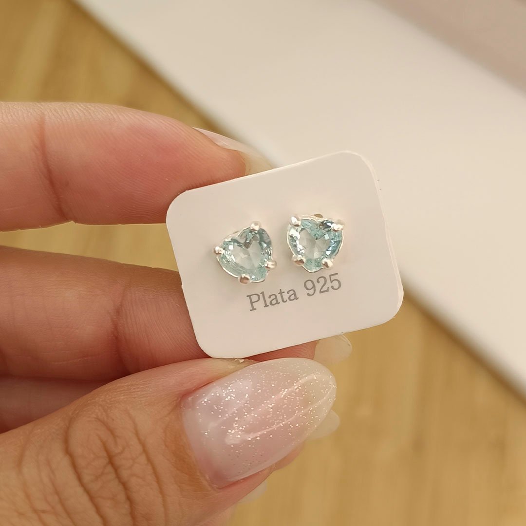 Plata 925 Aros Aros Corazón engarzado - Celeste