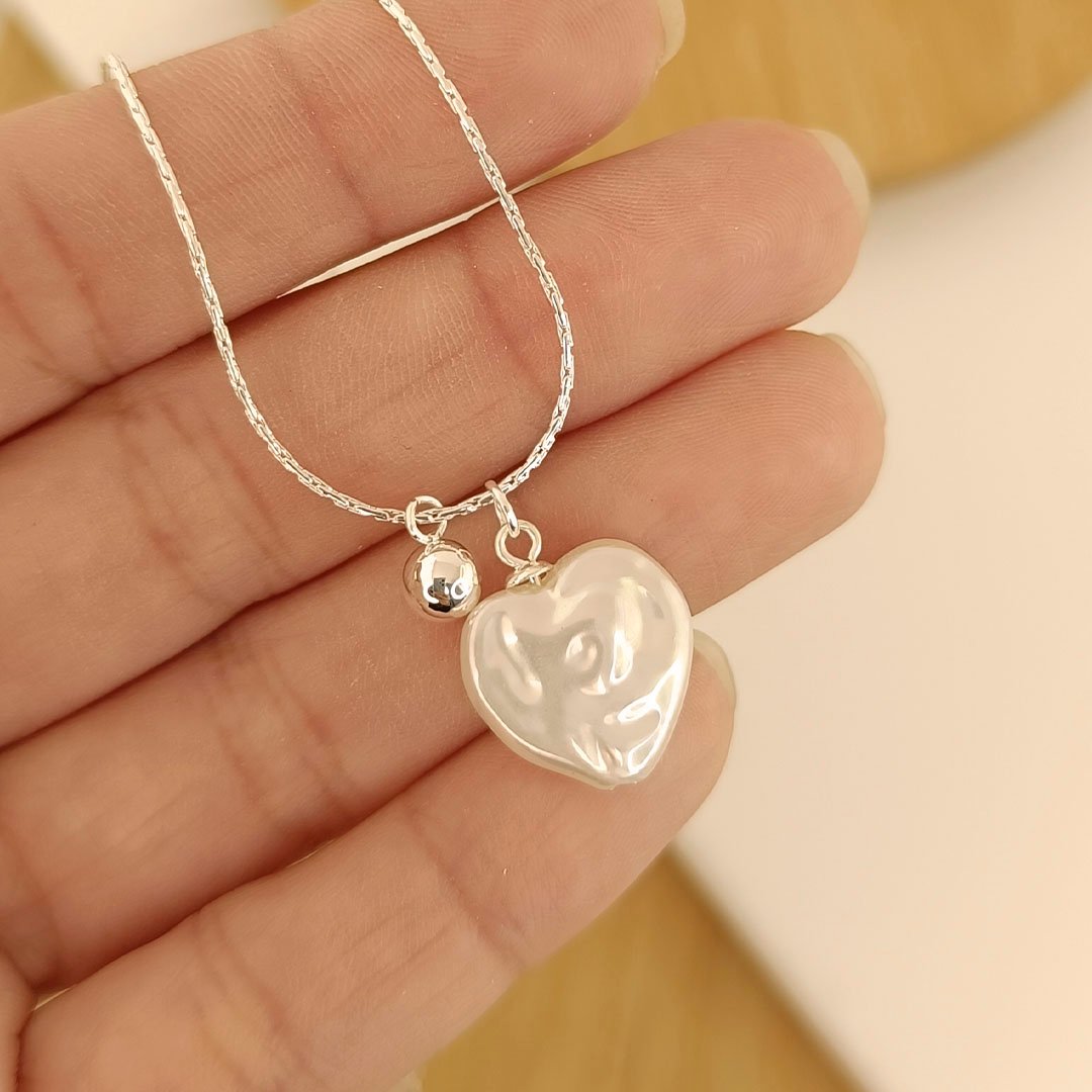 Collar cadena Avena + Dije Corazón Símil Perla + Bolita