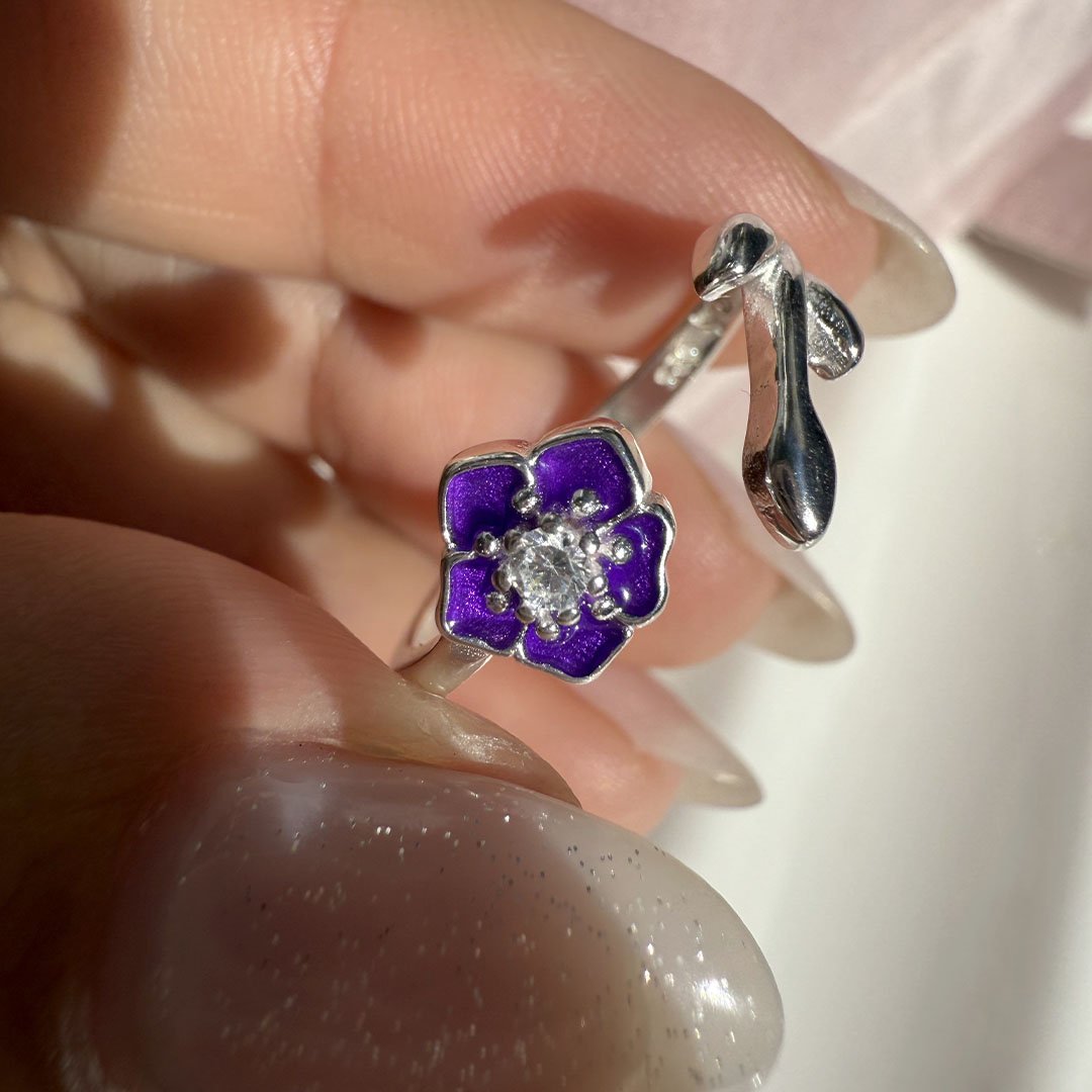 Anillo Falange Florcita Violeta + Hojita