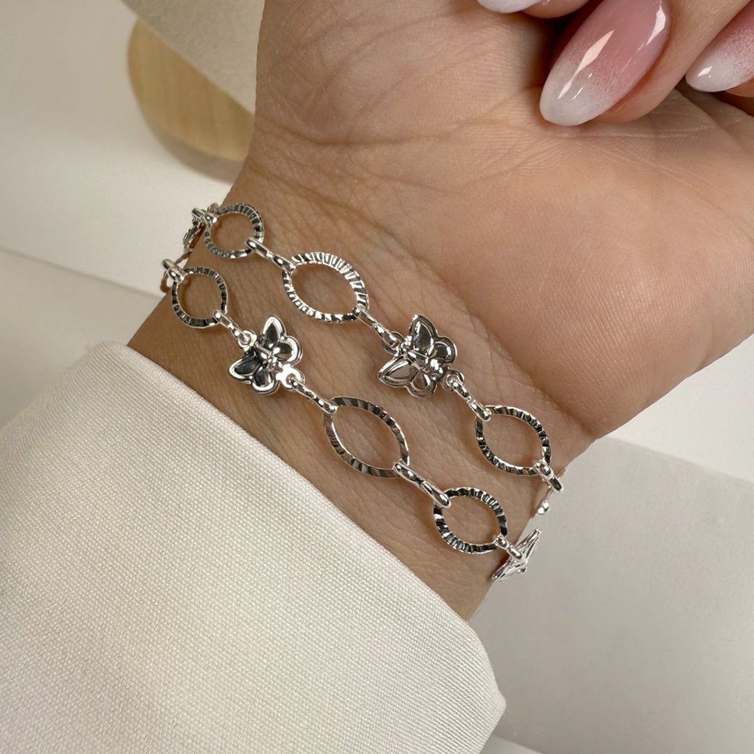 Pulsera con dijes ovalados + Mariposa