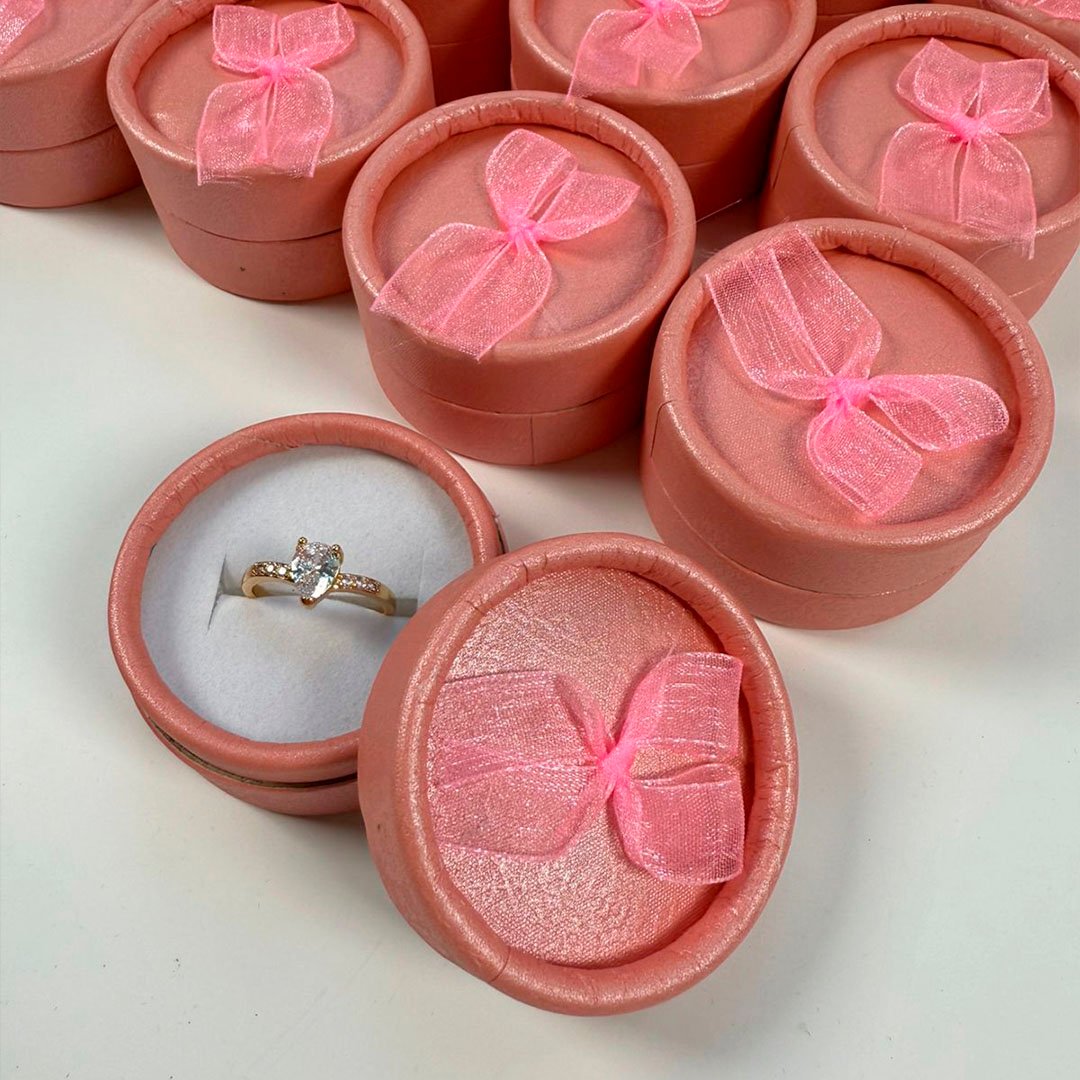 Cajita de anillo circular rosado