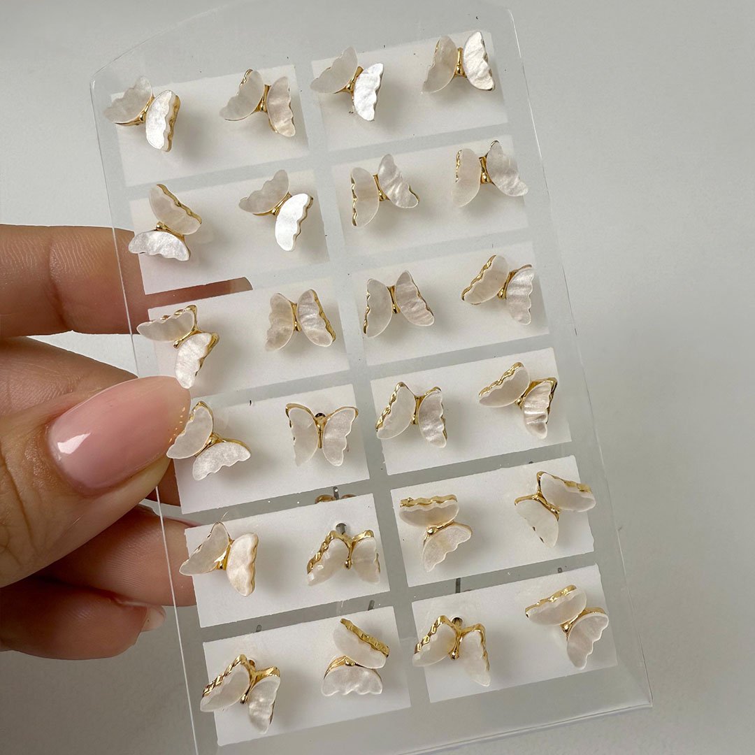 Blister Dorado x12 de Aros Mariposa - Piedra Blanca