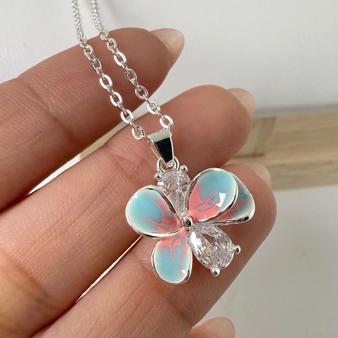 Collar Flor Celeste detalles rosa