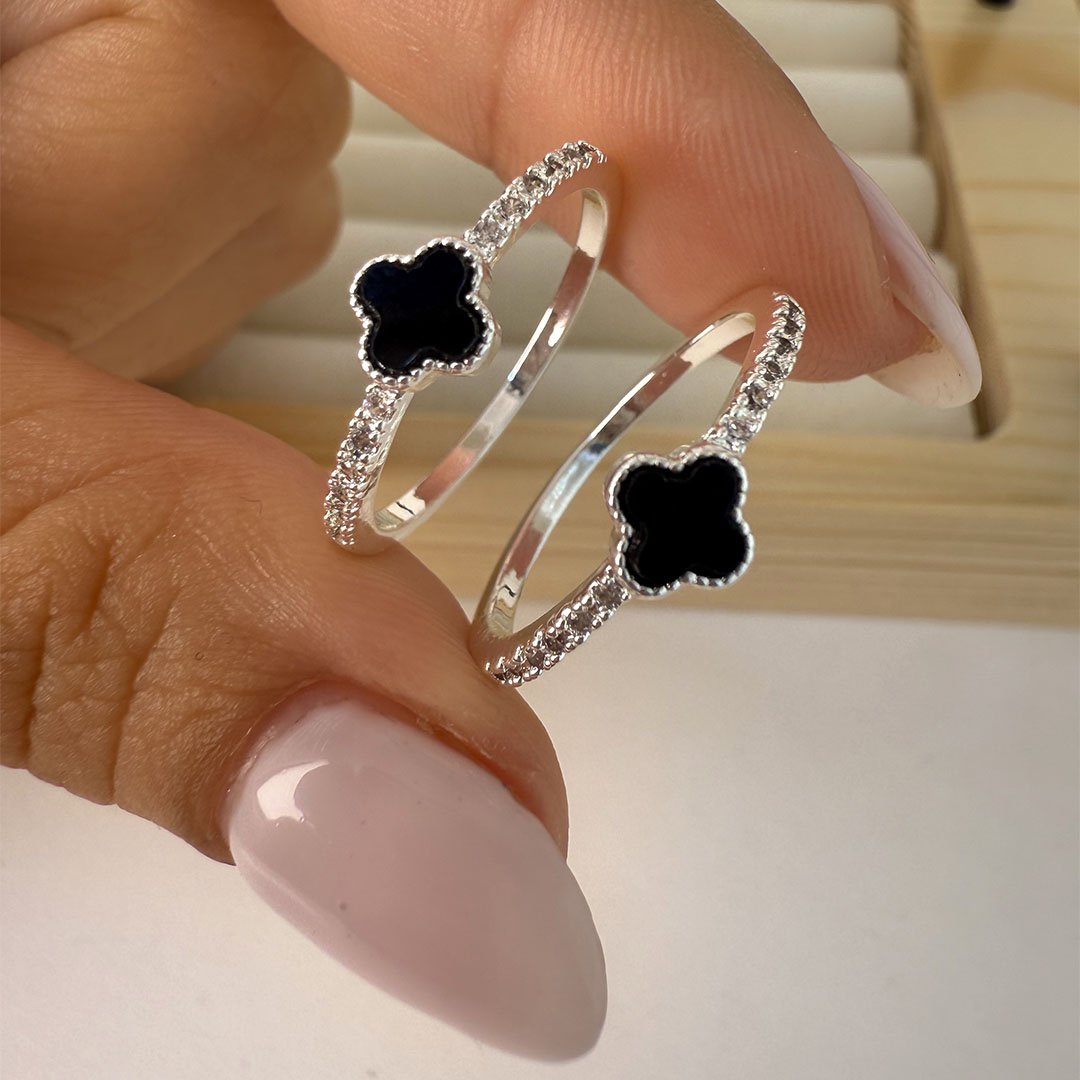 Anillo Falange Tréboles + piedrita corazón - Negro
