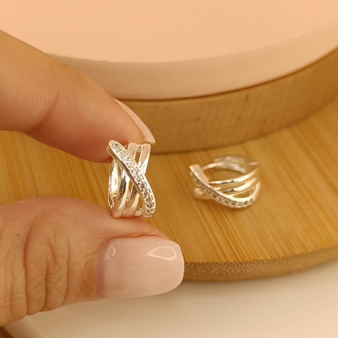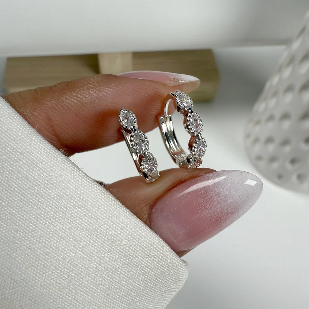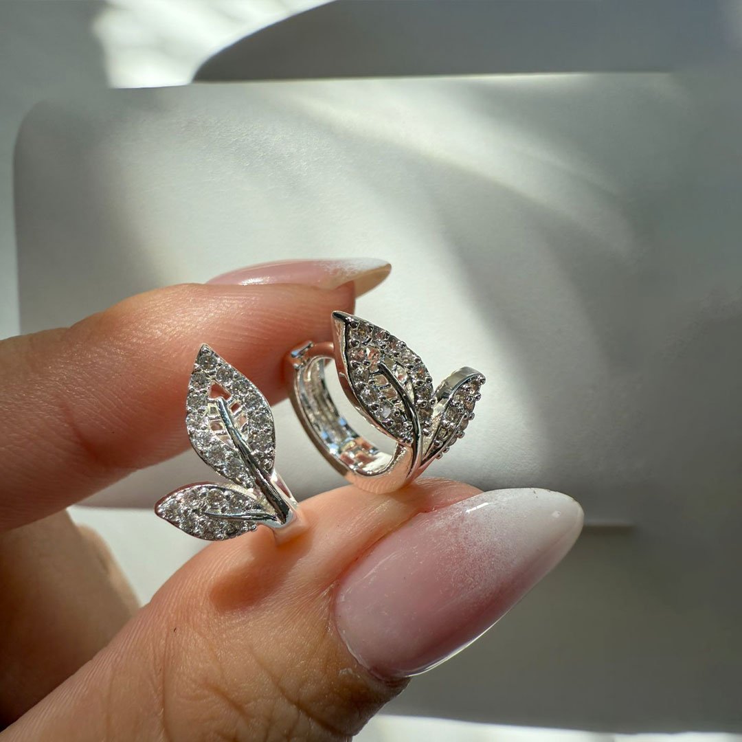 Argollas dos Hojitas con piedritas blancas
