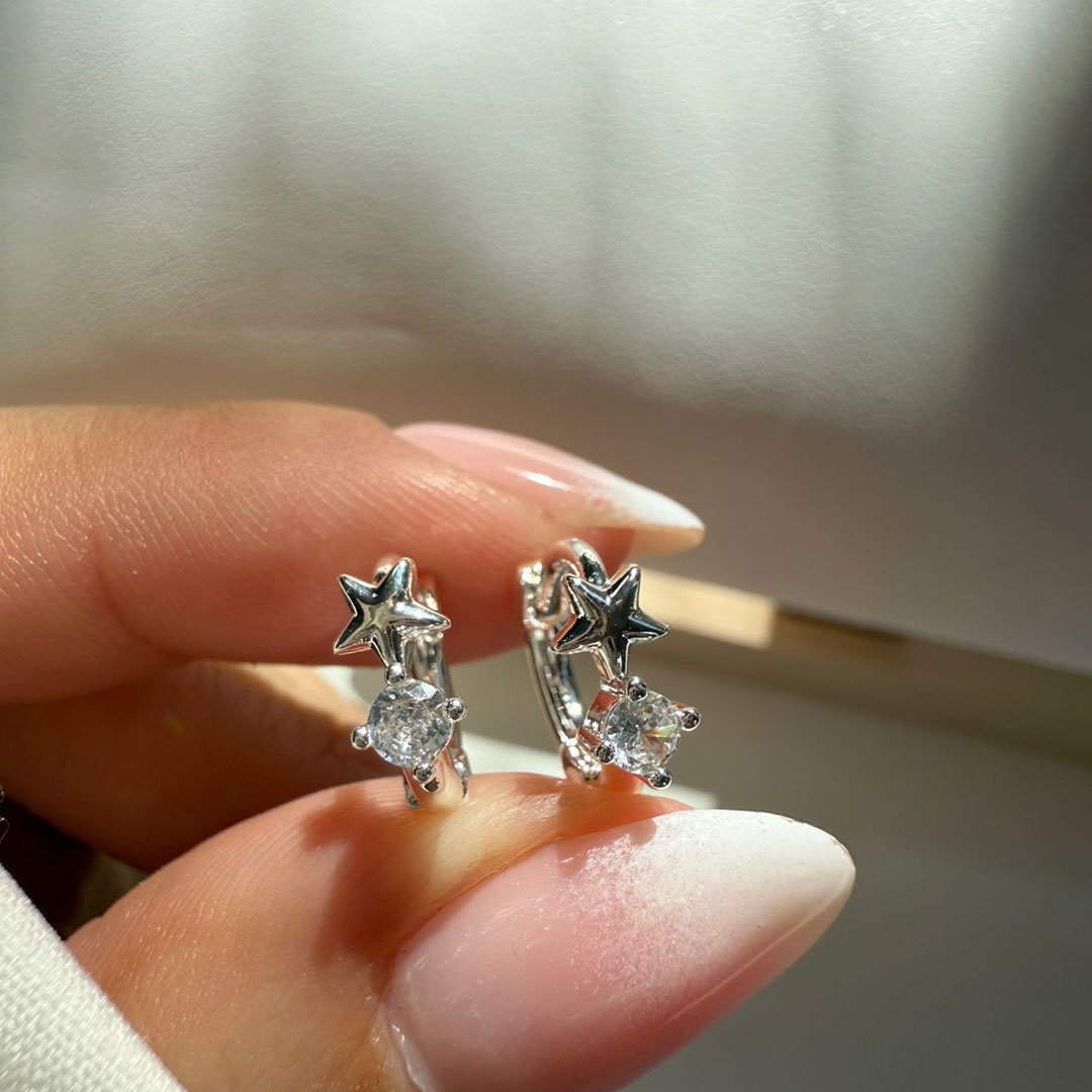 Argollas Euge -Estrellita / Piedrita Blanco