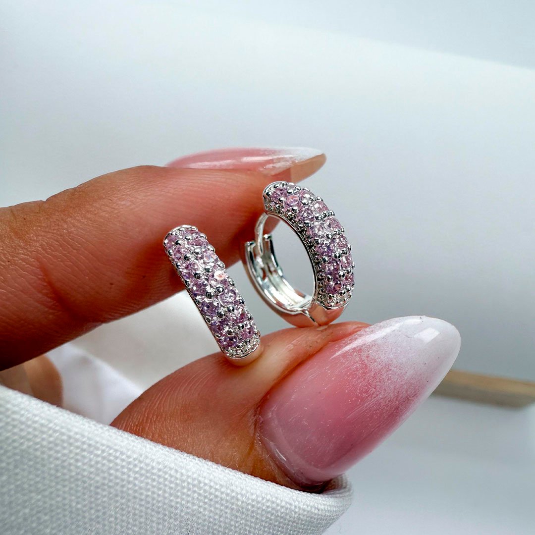 Argollas Premium Doble Piedritas- Rosado
