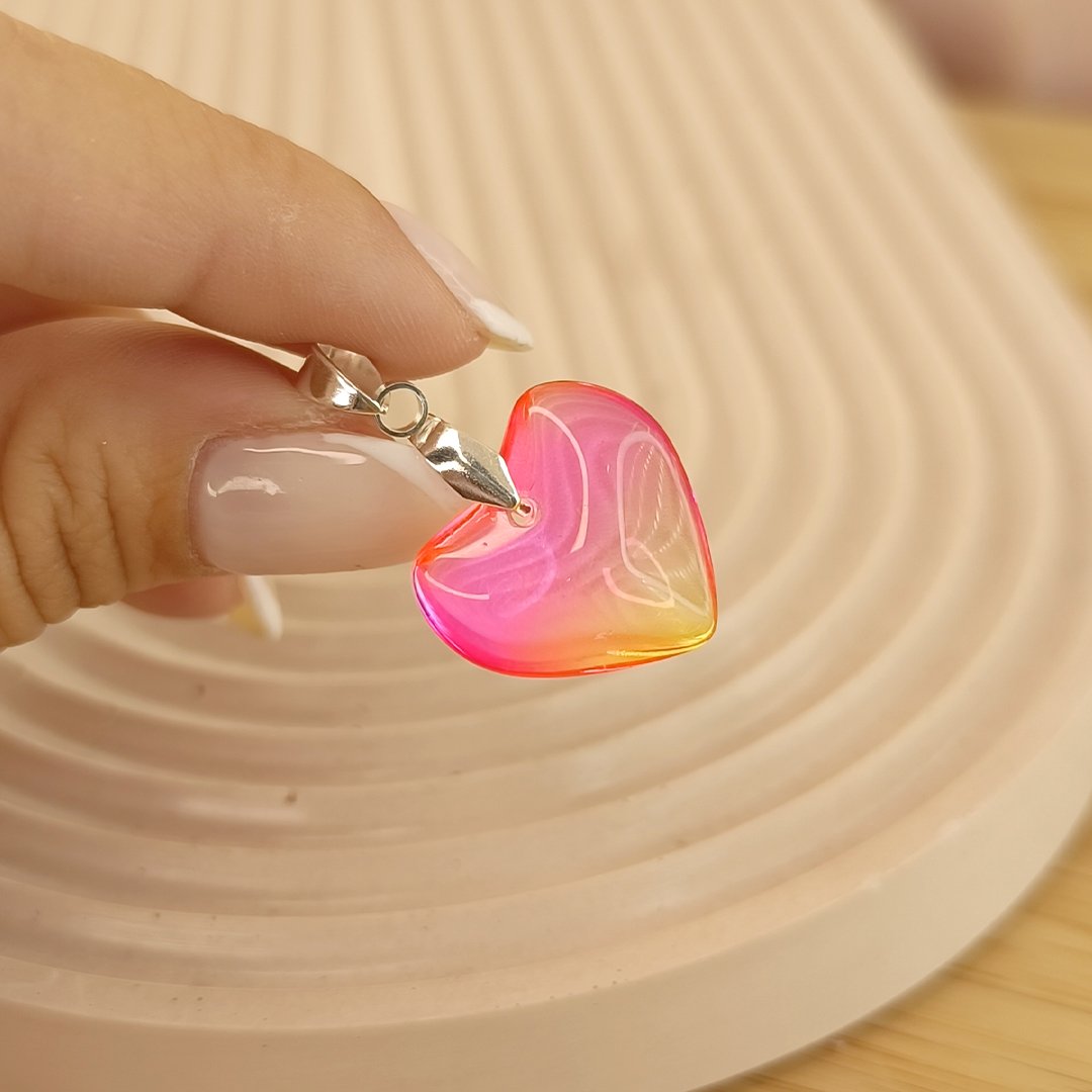 Dije Piedra Corazón Naranja Rojizo /Amarillo