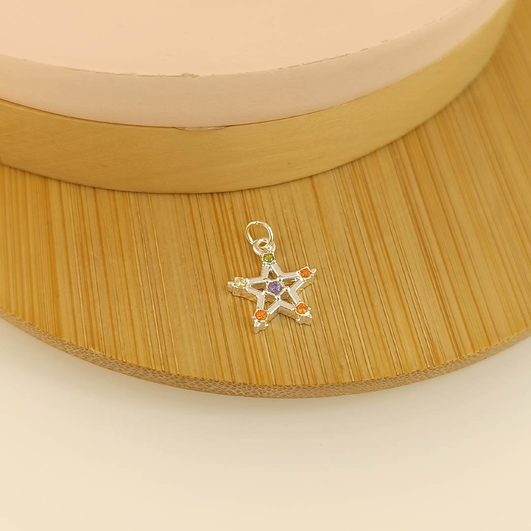 Dije Circular Estrella con piedritas + Contorno Estrella