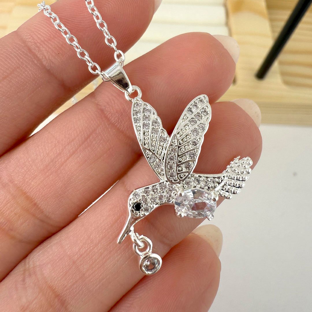 Collar colibrí Blanco + piedrita colgante