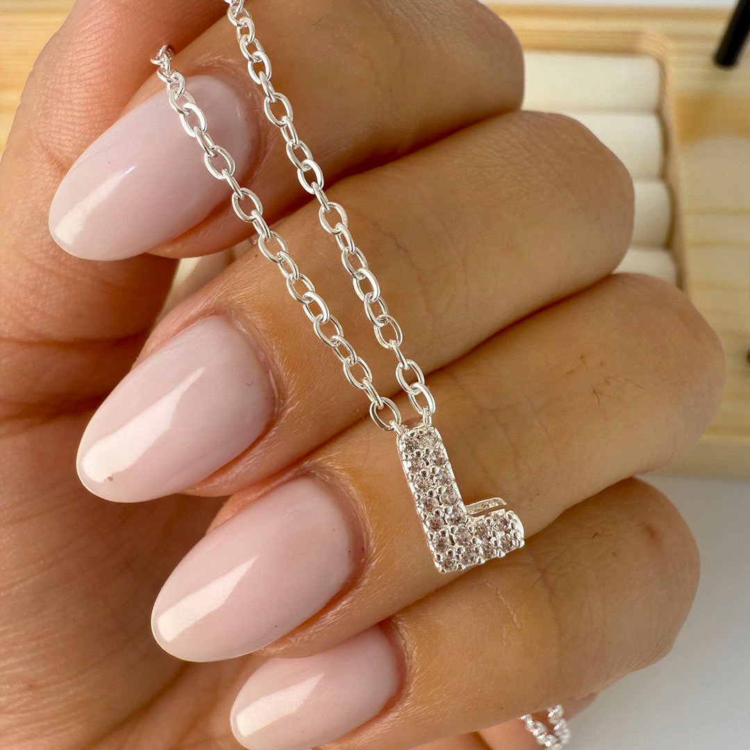 Collar Inicial "L" - Piedras Blancas