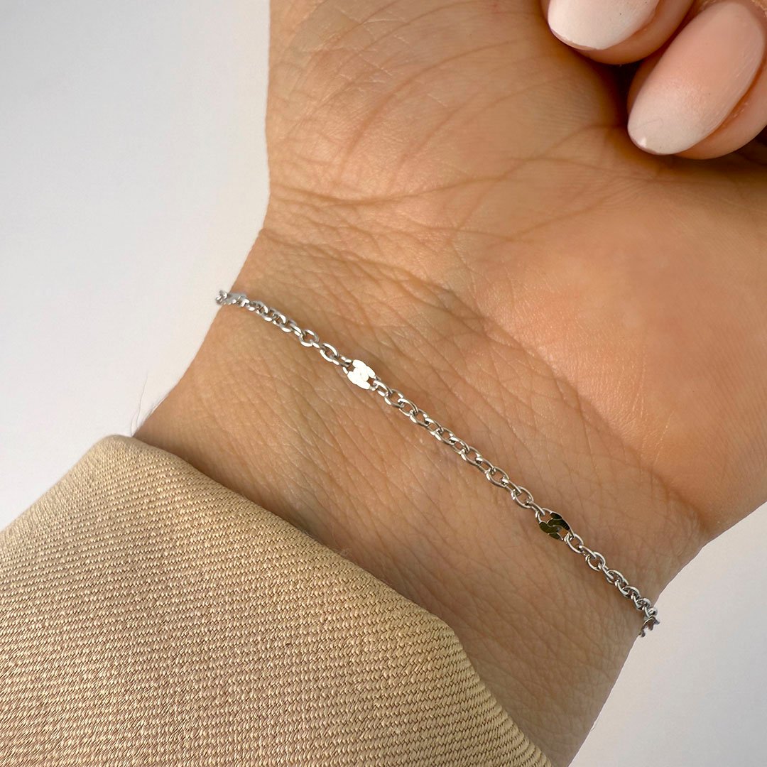 Pulsera Quirúrgico Cadena Forzada Redonda + Chapita chatas