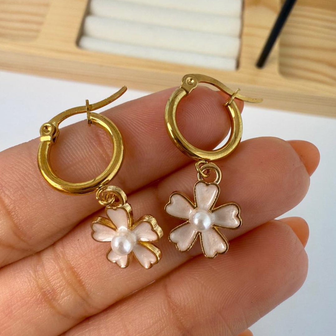 Argollas Dorado + Florcitas Nick - Blanco