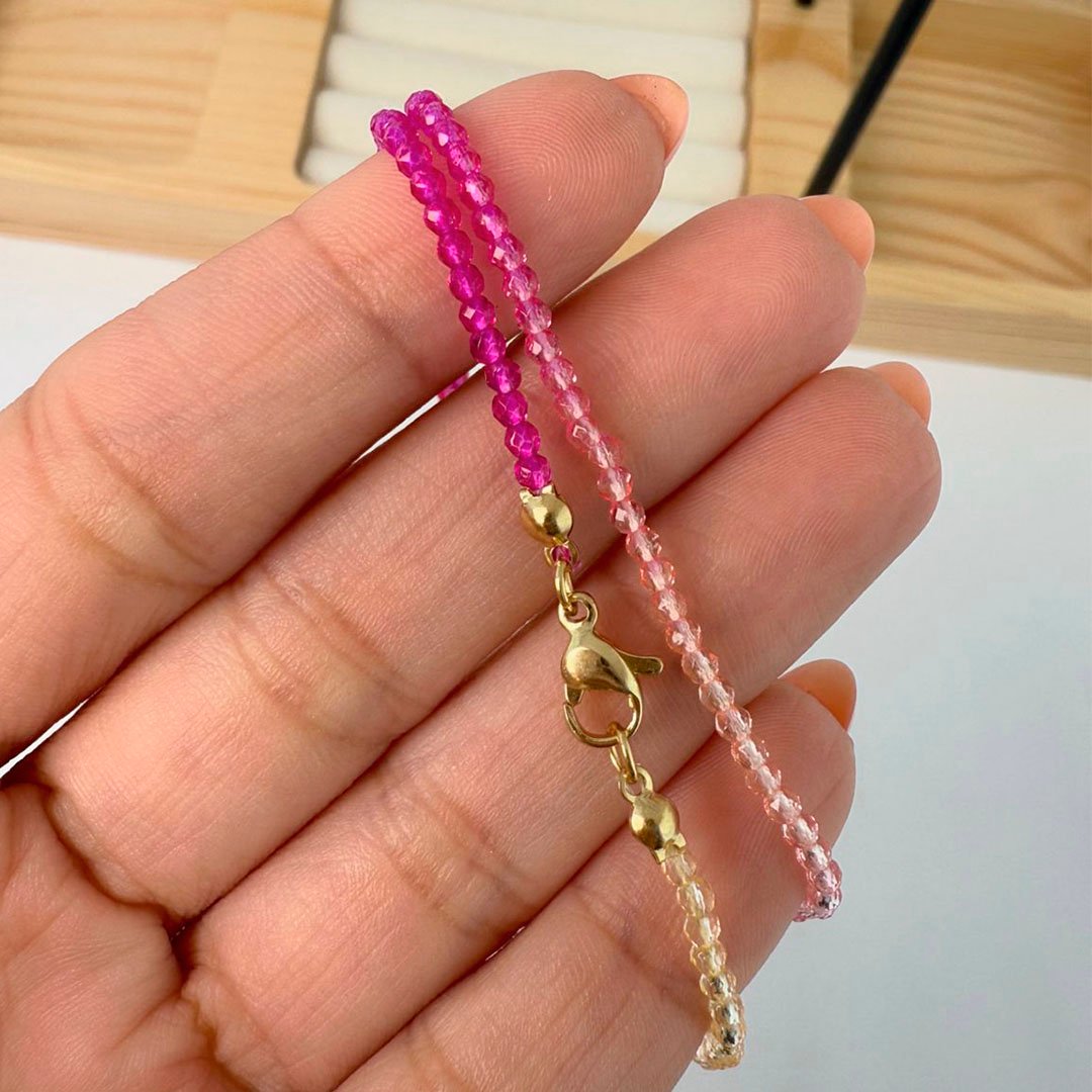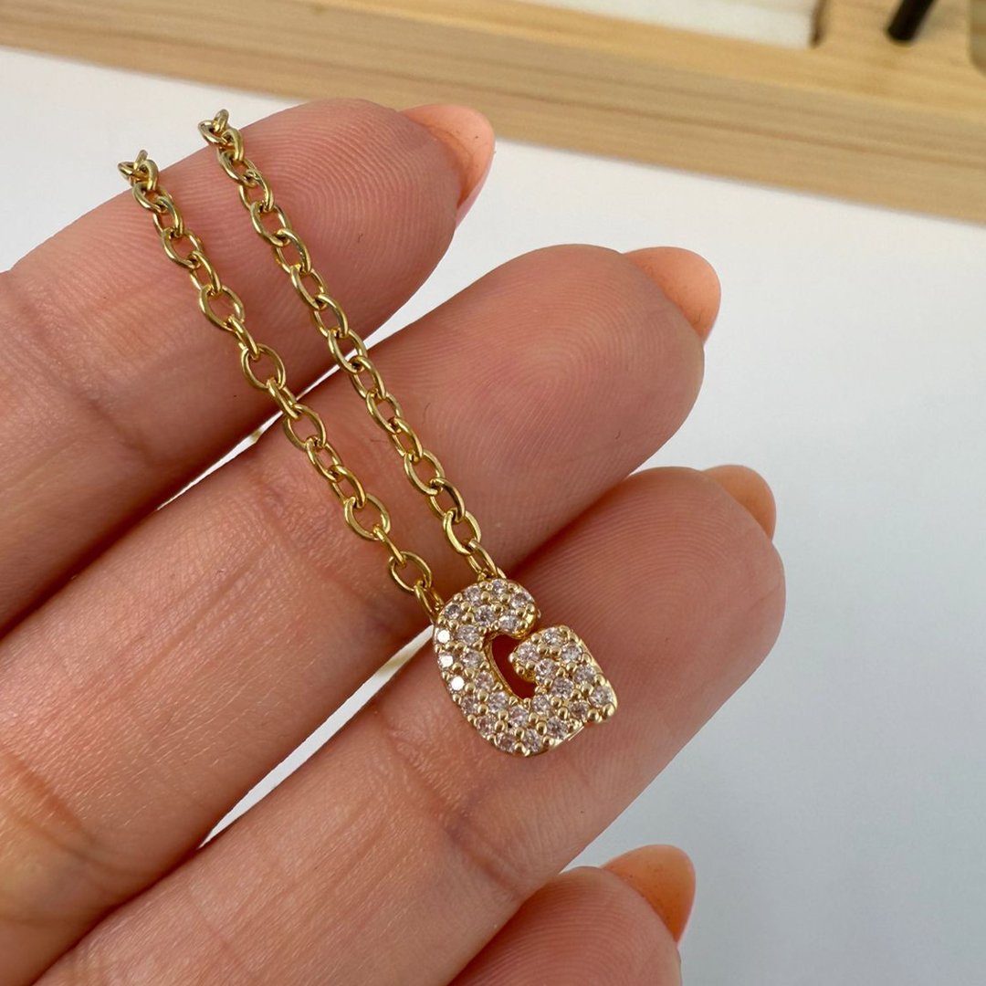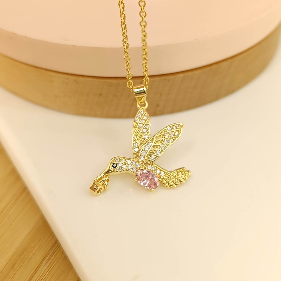 Collar Dorado Colibrí Rosado- Piedrita colgante