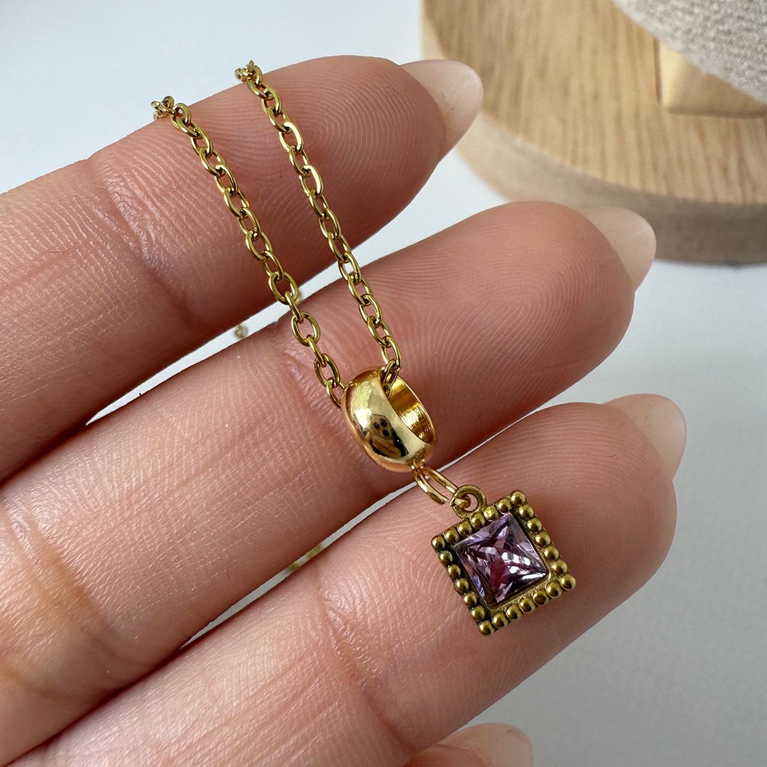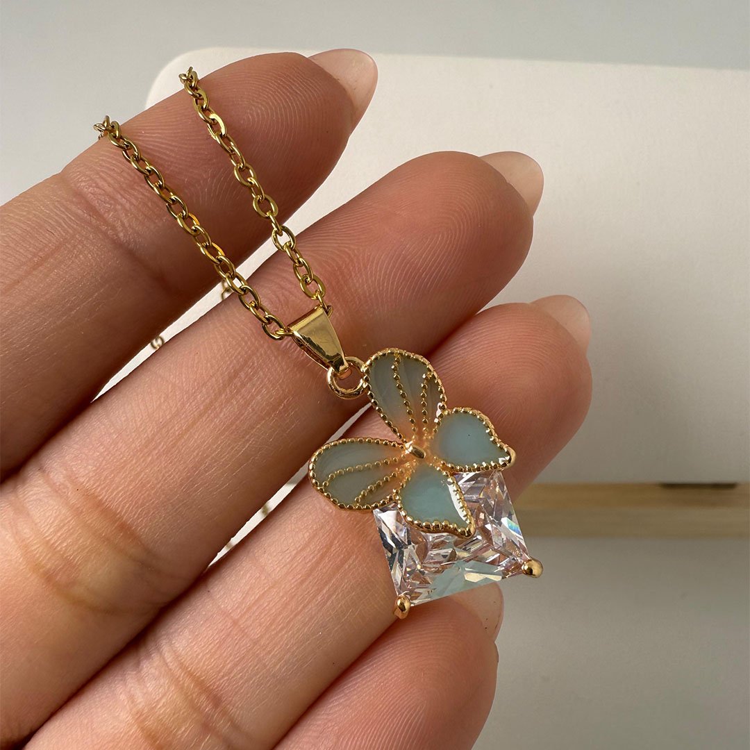 Collar Dorado Dije Mariposa Celeste opaco Detalle Rosa - Piedra