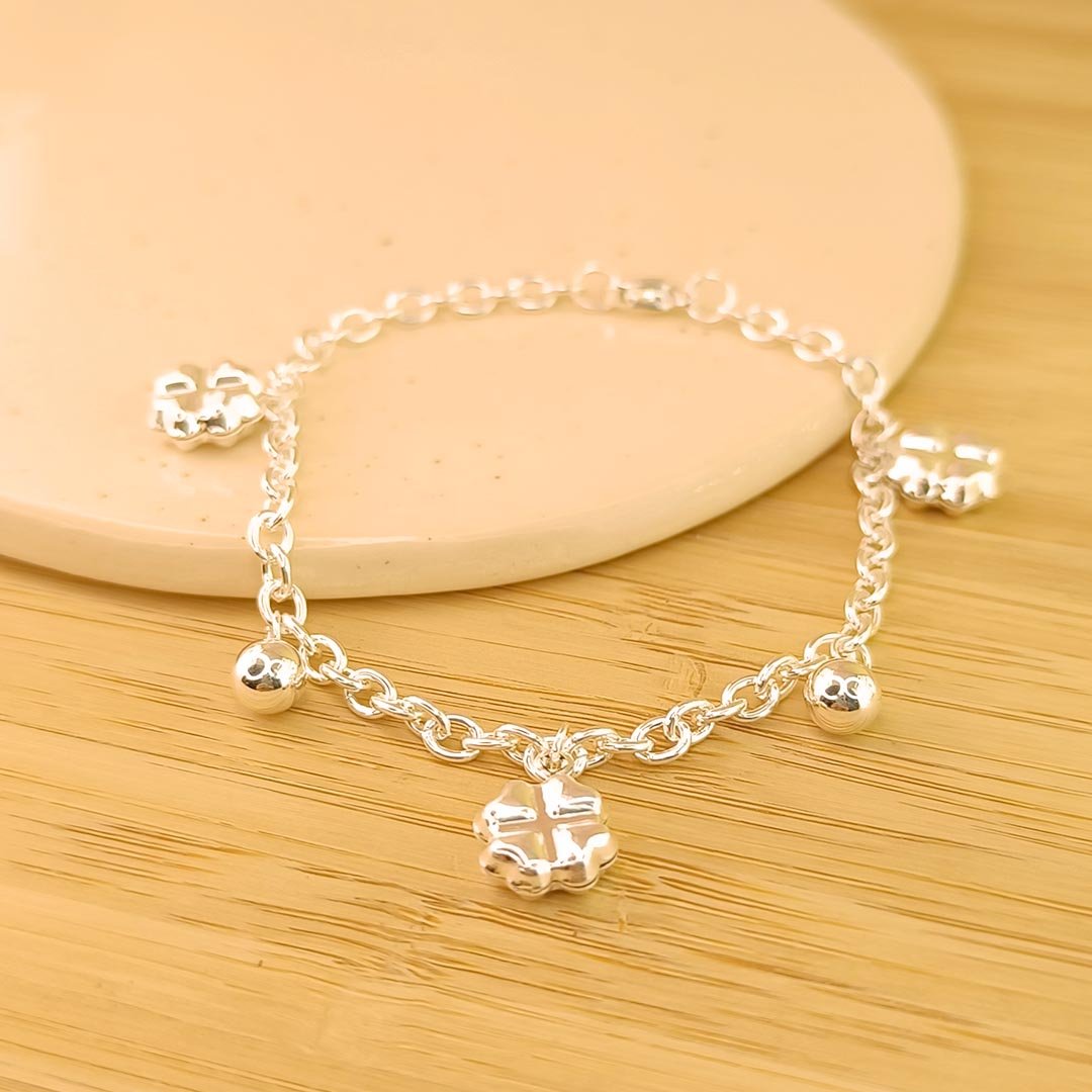 Pulsera Forzada Redondeada + dije Trébol Inflado + Bolitas